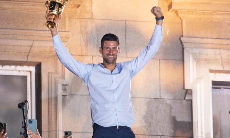 Doček je upriličen ispred Skupštine grada Beograda, a brojni navijači i poštovaoci Novaka Đokovića okupili su se kako bi ga dočekali i pozdravili.