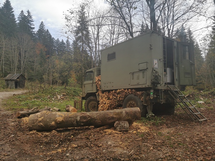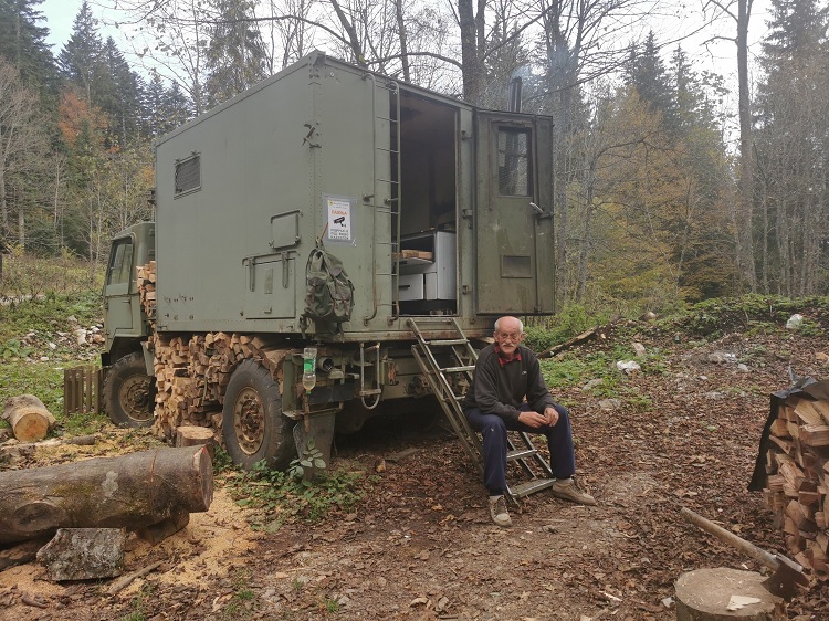 U šumi je već četiri godine. Radi dva dana, potom se pet dana odmara, pa onda ponovo tri dana u smjenu. Neobičan ritam, ali kaže da mu tako odgovara. U zbiru – deset dana mjesečno radi, a dvadeset planduje.