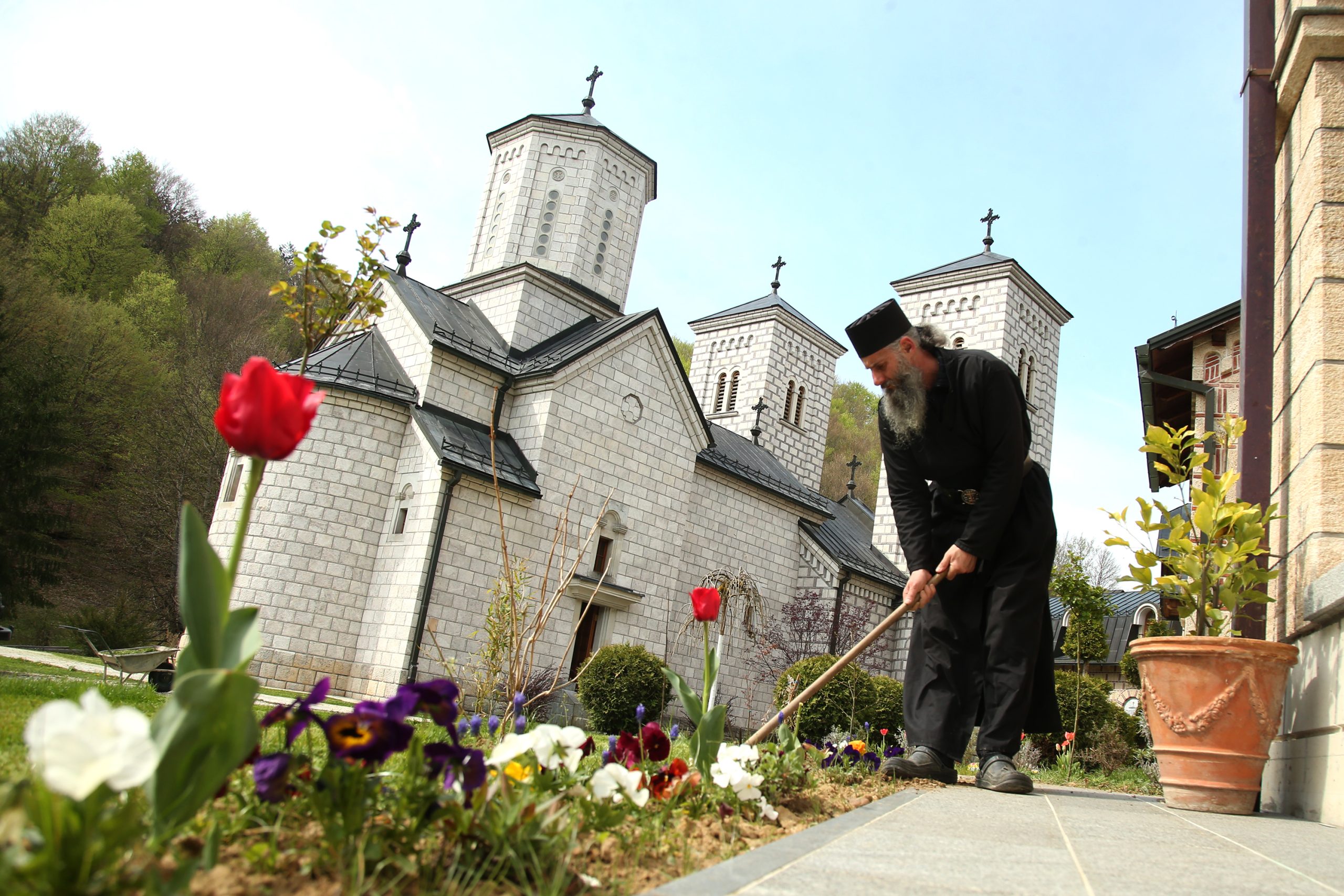 Tako su se i za vrijeme naše posjete, odmah nakon molitve, monasi uhvatili motike, da pred veliki praznik urede manastirsko dvorište. Izuzetak nije bio ni iguman manastira, otac Platon.