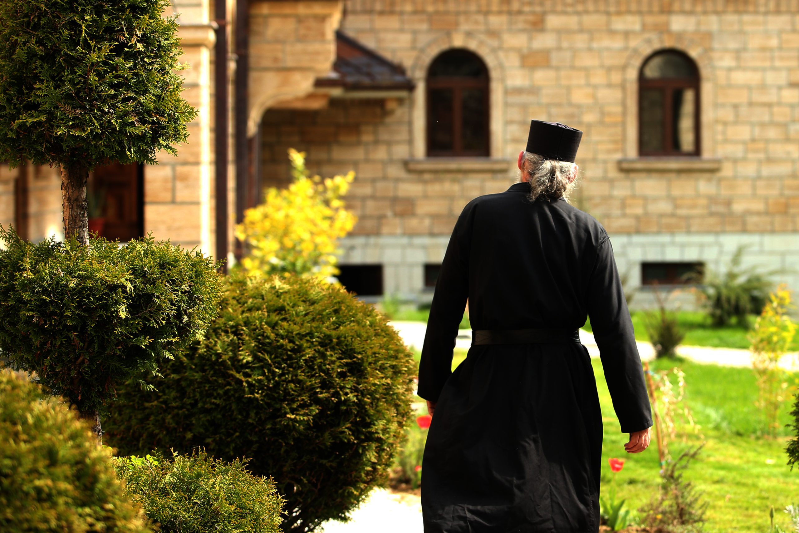 I jeromonaha Georgija starijeg, koji je u Stuplje došao prije nekoliko mjeseci iz jednog manastira na Fruškoj Gori, zatekli smo kako okopava cvijetnjak.