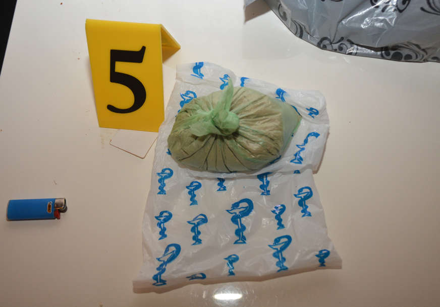 Tokom pretresa zaplijenjeno je kilogram genetski modifikovane marihuane skanka, 28 stabljika indijske konoplje, ekstazi, 136 grama kokaina i 300 grama heroina.