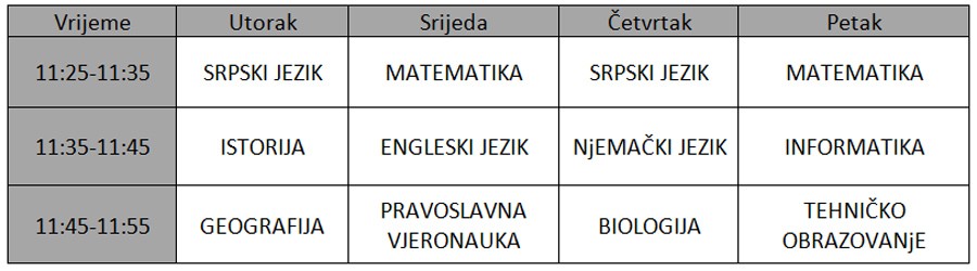 - Osmi razred, nastava traje od 12:55 do 13:25