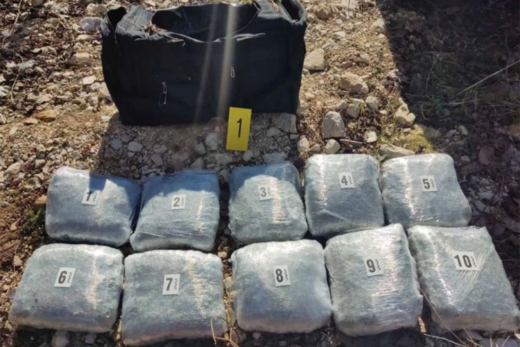 Granična policije BiH danas je na području Trebinja pronašla odbačenu torbu u kojoj je bilo oko 10,5 kilograma marihuane.