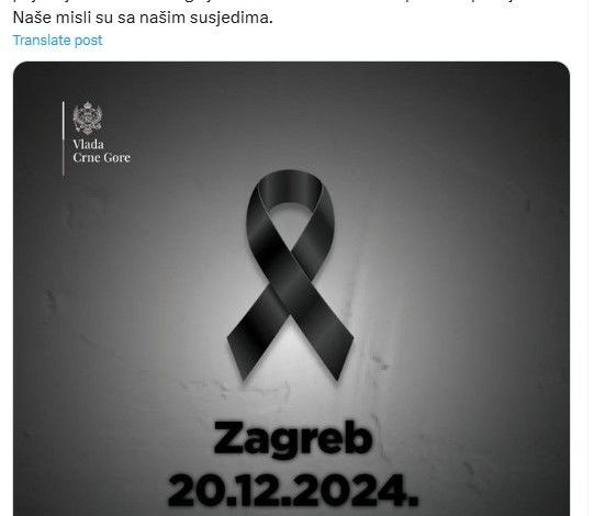 U ponedjeljak Dan žalosti u Crnoj Gori zbog tragedije u Zagrebu