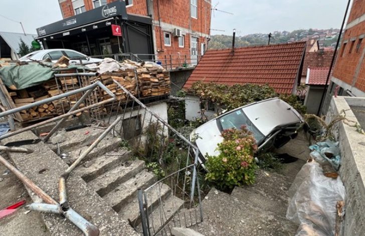 On je probio metalnu ogradu i završio u dvorištu porodične kuće. Drugo je vozilo ostalo na trotoaru s vidljivim oštećenjima na prednjem dijelu.