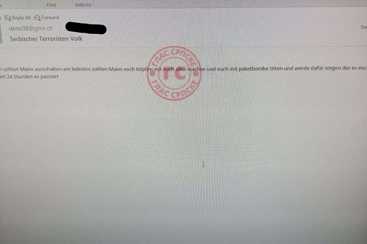 Na mejl adrese više službenika Vlade Republike Srpske stigla je juče prijeteća poruka napisana na njemačkom jeziku.
