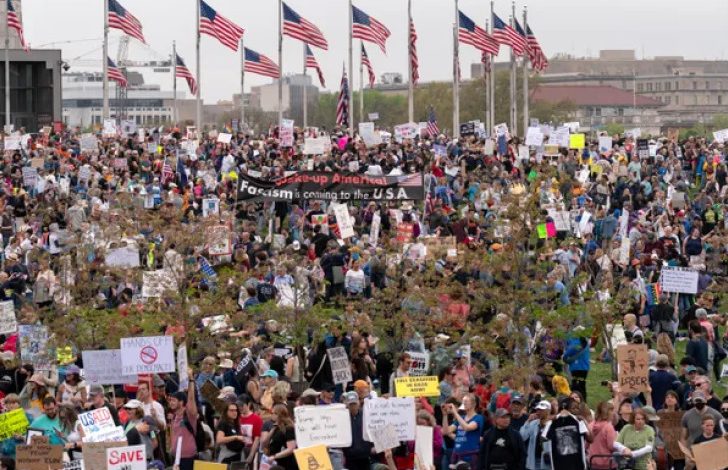 Si-Bi-Es njuz (CBS News) navodi da su protivnici Trampove administracije izašli na ulice velikih i malih gradova širom SAD u subotu, u znak osude poteza koje smatraju prijetnjama po američke demokratske ideale – od okupljanja usred Menhetna do demonstracija na komemorativnom događaju u Masačusetsu kojim je obeležen početak Američkog revolucionarnog rata pre 250 godina.