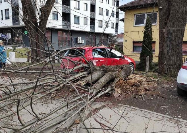 Јak vjetar oborio je stablo u Kozarskoj ulici u Banjaluci.