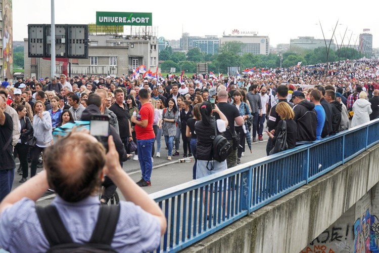 Mnogi građani, koji su iz drugih gradova došli autobusima, sa Novog Beograda preko Brankovog mosta uputili su se pješke ka centru grada.