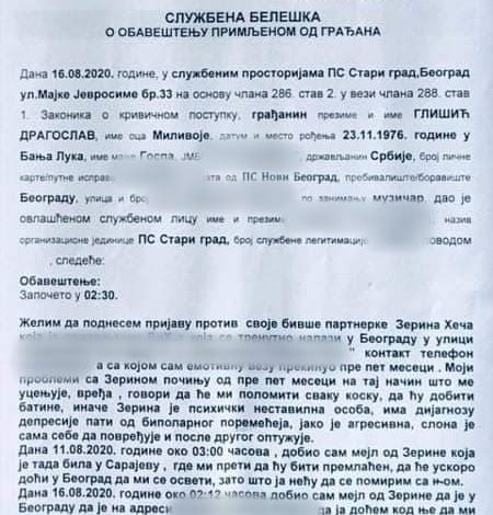 Nekadašnja učesnica rijalitija "Zadruga" Zerina Hećo i muzičar Dado Glišić okončali su vezu, ali veoma neslavno. Zerina je nedavno objavila Dadove mejlove u kojima je on nagovara da se javno izvini zbog stvari koje rekla o njihovoj vezi, pa i između ostalog da ju je fizički i psihički maltretirao.