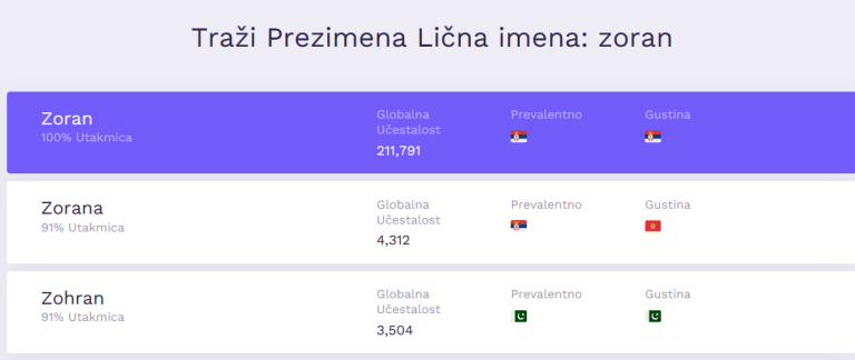 Na linku ispod možete pokušati da pronađete gdje sve žive vaši „prezimenjaci“, dovoljno je samo ukucati svoje prezime i prikazaće vam se mapa sa državama i brojem „vaših prezimenjaka“.