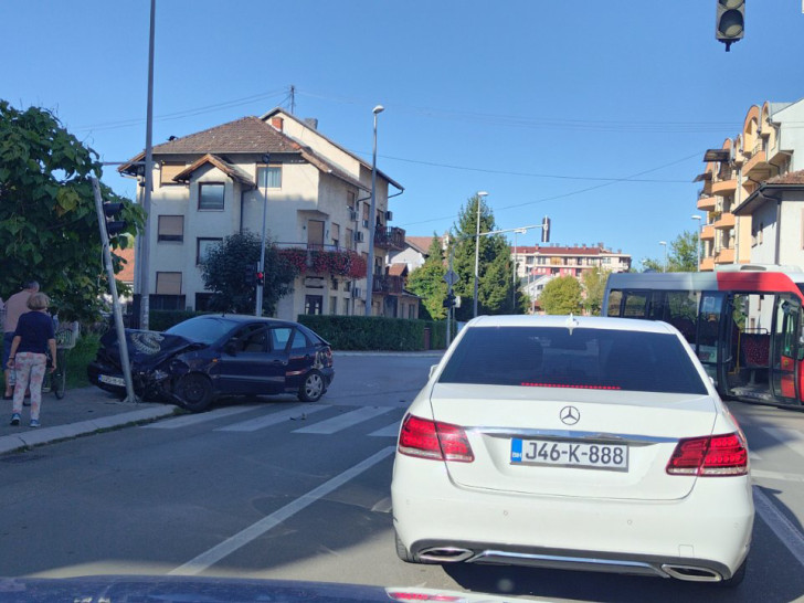 Sudarili su se kombi vozilo prevoznika „Pavlović turs“ i automobil „fiat“ koji je nakon sudara udario u semafor.