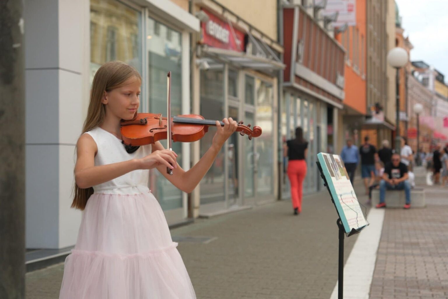 Djevojčica Vanja izašla je juče u Gospodsku ulicu sa svojom violinom i talentom kako bi prikupila novac za novog konja koji će pomagati djeci i buditi u mališanima ljubav ka jahanju.