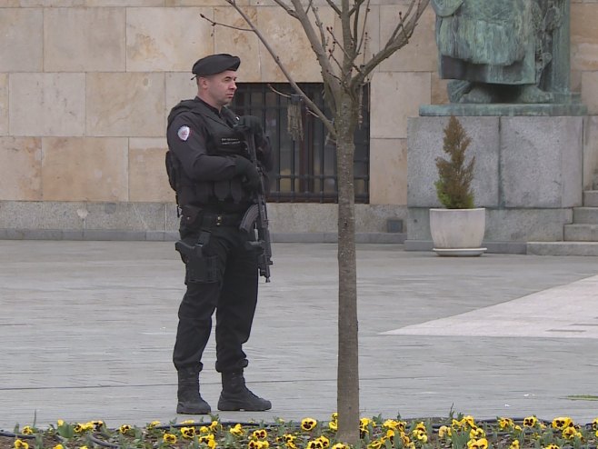 Policajci su raspoređeni oko Palate Republike, a tu su parkirana i policijska vozila.