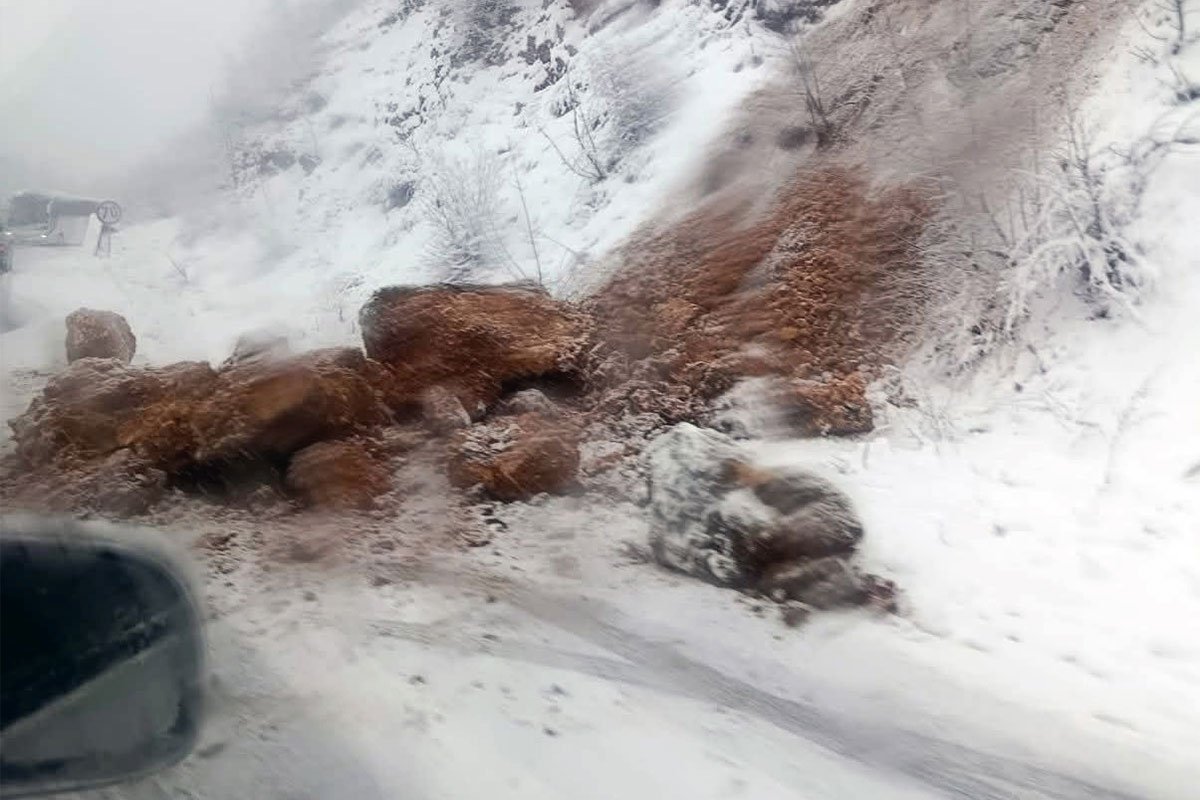 Na magistralnom putu Pale-Sarajevo u mjestu Lapišnica došlo je do obrušavanja stijene na kolovoz.