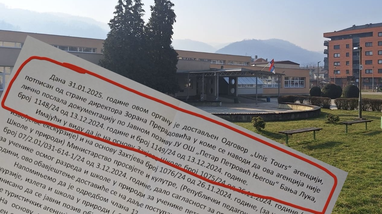 – Dana 31. 1. 2025. godine Republičkoj upravi za inspekcijske poslove je dostavljen odgovor „Unis toursa“, potpisan od strane direktora Zorana Preradovića, u kome se navodi da ova agencija nije lično poslala dokumentaciju po Javnom pozivu JU OŠ „Petar Petrović Njegoš“ Banja Luka broj 1148/24 od 13. 12. 2024. godine i broj 1149/24 od 13. 12. 2024. godine – navodi se u obavještenju Inspektorata koje je upućeno Savjetu roditelja.