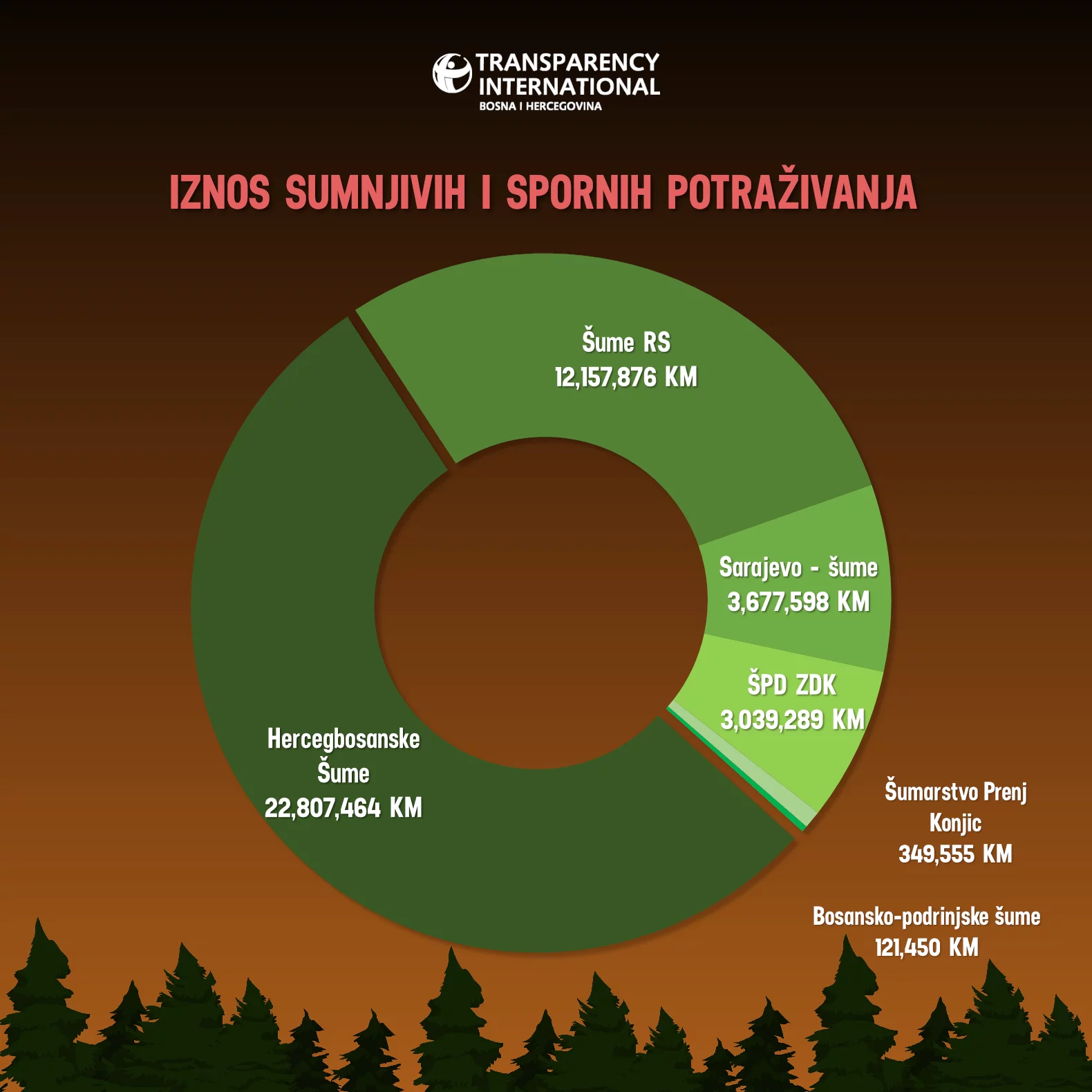 Takođe značajna sporna potraživanja preko 3 miliona KM imaju Sarajevo-šume i  „Šumsko – privredno društvo Zeničko – dobojskog kantona“. Značajno je istaći  da neka od ovih javnih preduzeća koja se bave istim ovim poslom nemaju sumnjivih potraživanja kao „Bosanskohercegovačke šume“ ili Šume Tuzlanskog Kantona.