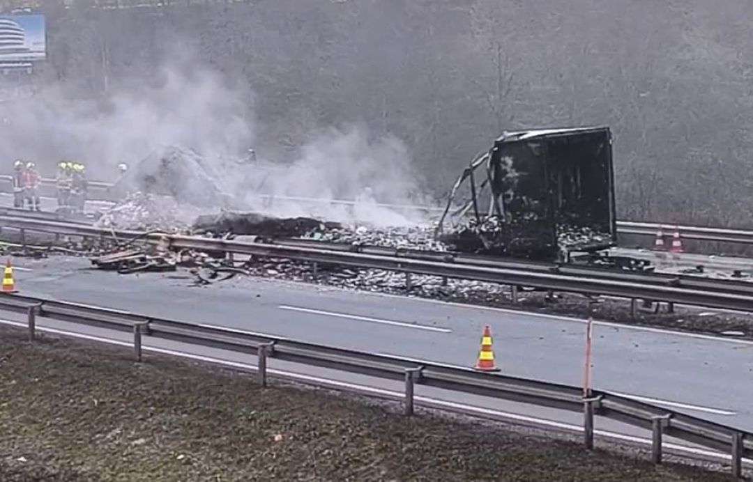 Slovenačka policija primila je dojavu o udesu jutros oko 5:20 časova. Dosadašnja istraga ukazuje na to da je vozač jednog teretnog vozila naletio na kamion ispred sebe, koji je potom od siline udarca udario u treće vozilo. Uslijed sudara je došlo do zapaljenja vozila, a vatrogasne ekipe su i dalje na mjestu događaja gdje gase i obezbjeđuju zapaljeni kamion.